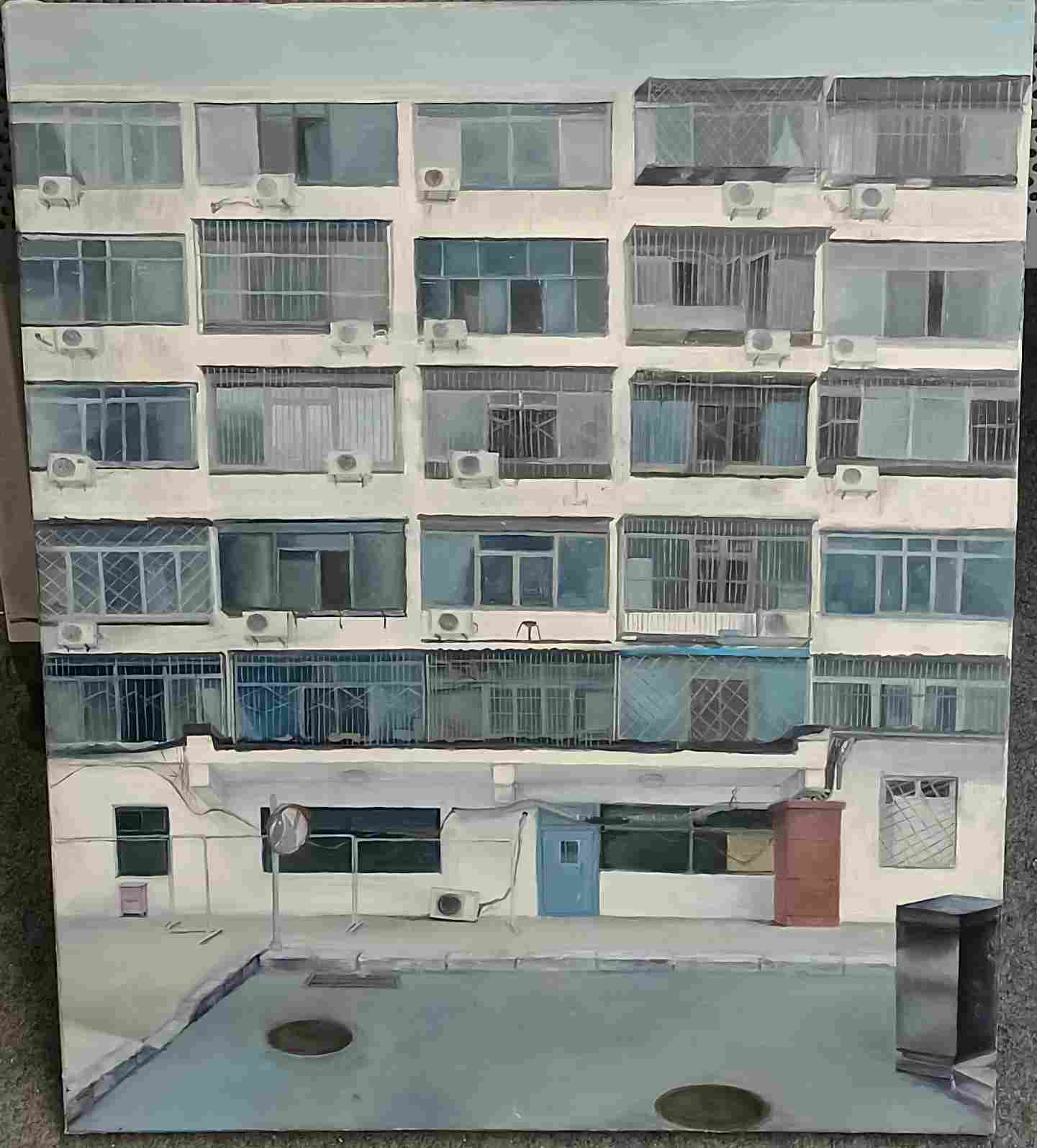 《岁月栖居》的创作灵感源自对日常生活中平凡而真实的居民楼的深刻观察。在参考画家罗松细腻而富有情感的笔触后,我被其作品中流露出的对生活场景的深情描绘所打动。居民楼作为城市生活的缩影,承载着无数人的悲欢离合与岁月流转,这种历史的沉淀与生活的痕迹成为了我创作的源泉。