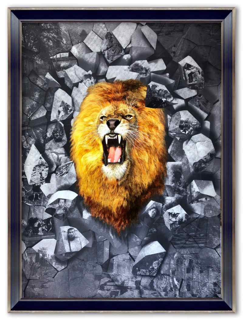 《醒聩》的立意具有强烈的时代性,又巧妙地契合了湘绣的优势。众所周知,湘绣的代表作是狮虎,作者由此联想到了,世界列强曾经对中国“东方睡狮”的比喻。于是,作者以湘绣的独门秘技鬅毛针法,绣制了一头威风凛凛的金毛狮王,破墙而出,奋然怒吼,振聋发聩,寓意东方睡狮已经觉醒,打碎积贫积弱的旧社会,走向更强大、更光明的未来。《醒聩》发掘并升华了湘绣的代表作与核心技术,赋予了非物质文化遗产新的意义与生命,题材也恰逢其时,表达了作者爱国爱党的真挚情感。